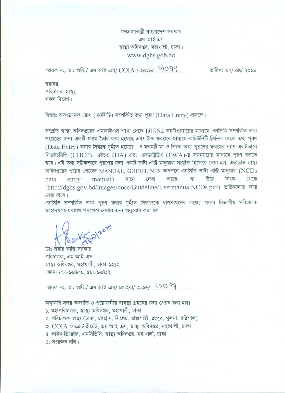 HYPERTENSION, COPD & CANCER)DHIS2 তে রিপটদেয়ার বিভিন্ন সময়কার চিঠি